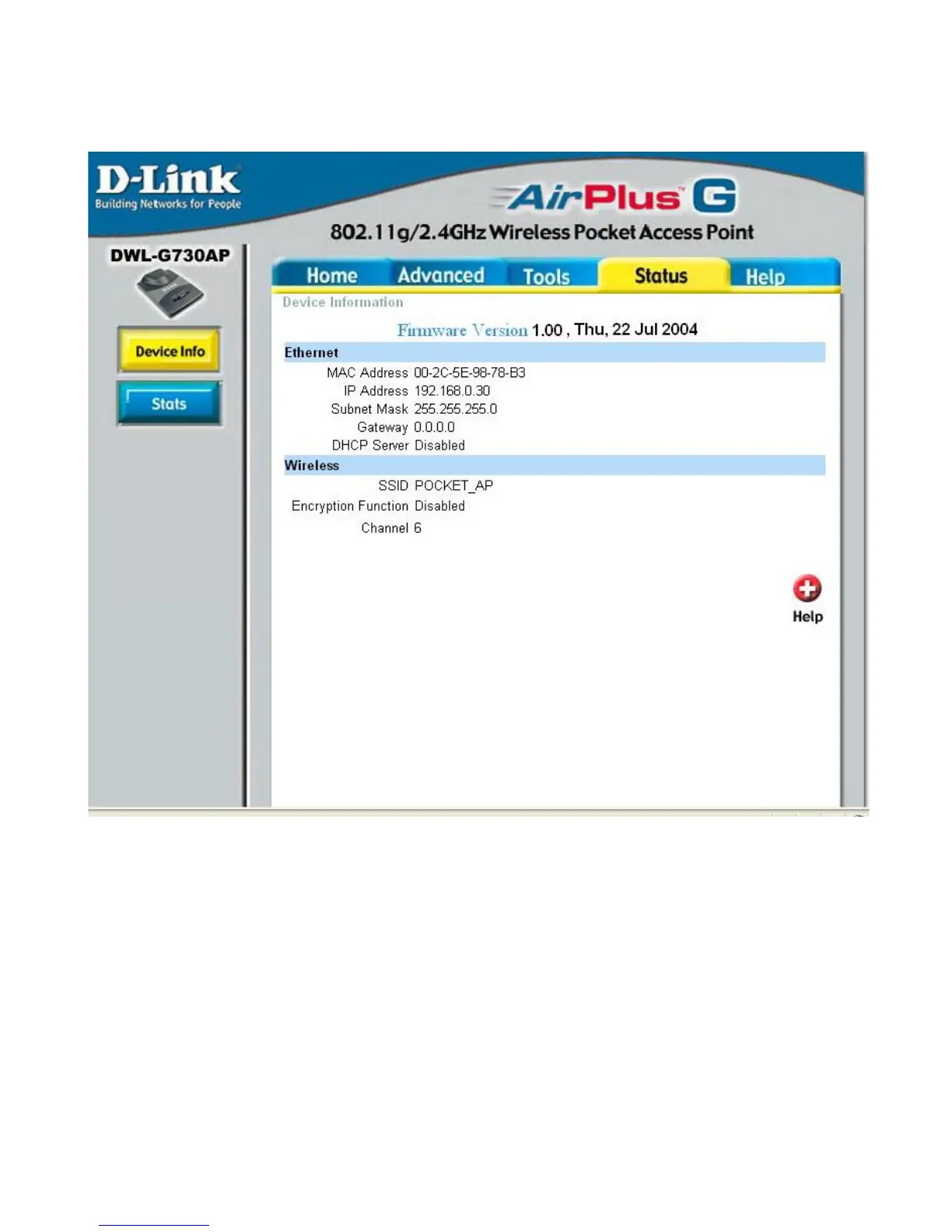 D-Link AirPlus DWL-G730AP - Viewing Device Information in Client Mode