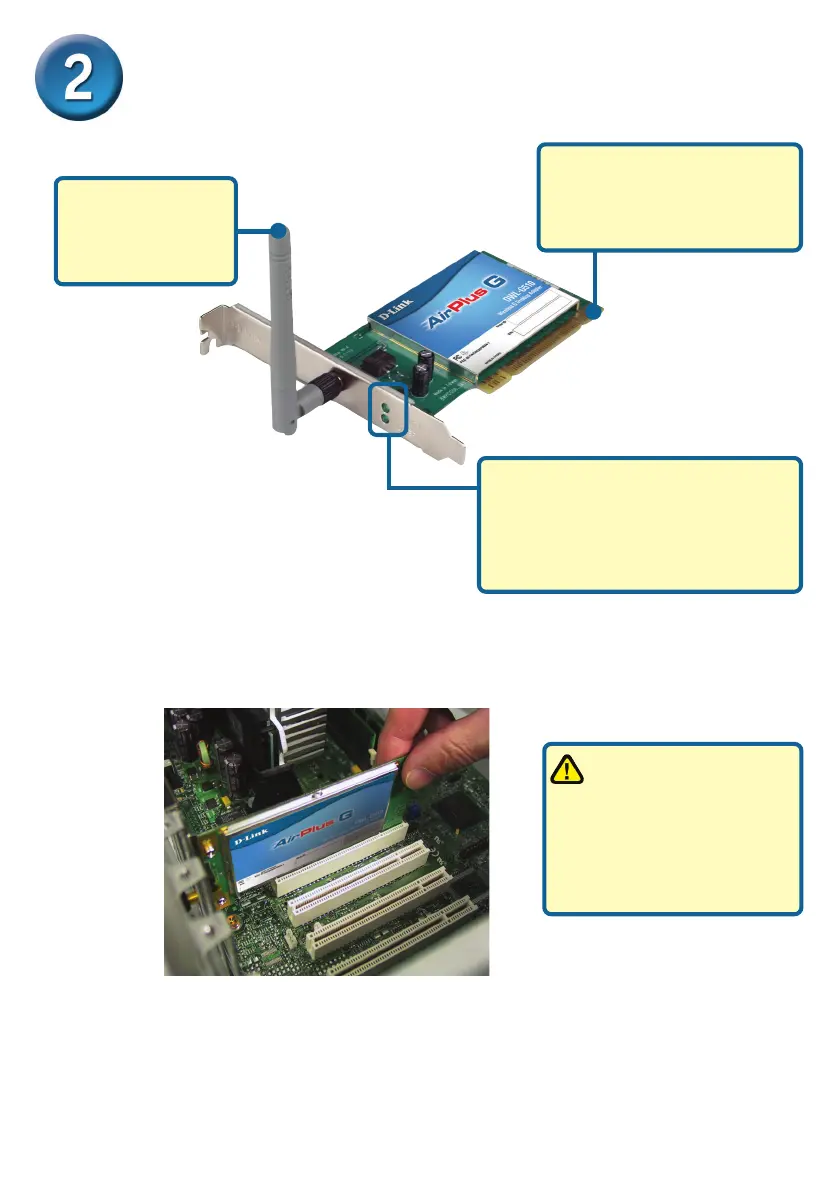 B. Install the DWL-G510 carefully and firmly seat it into an available PCI slot