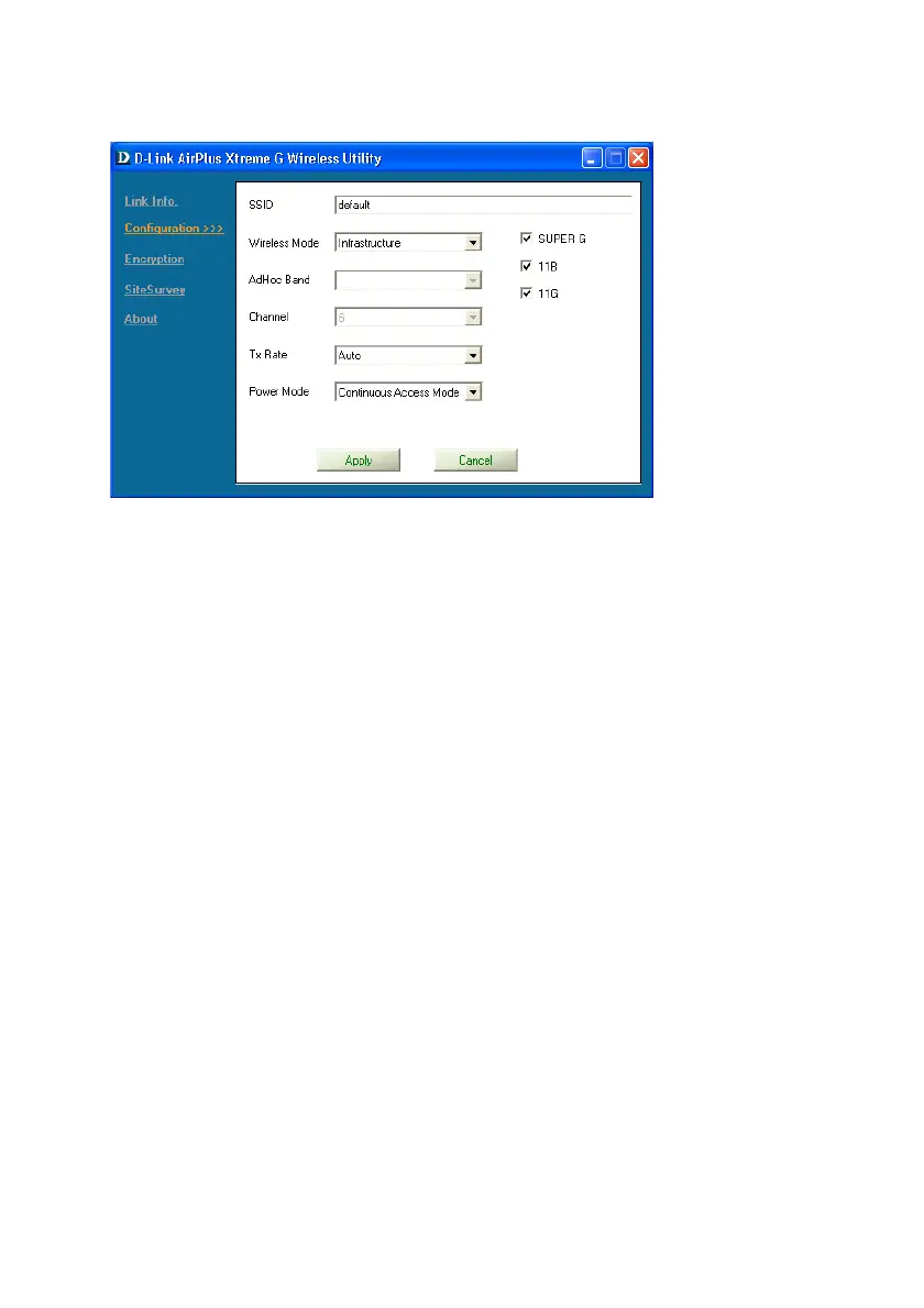 Channel: The channel selection is automatically determined by the DWL-G520. In Ad-