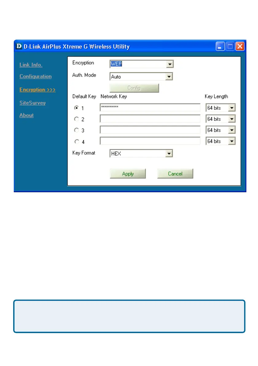 Network Key – Enter a key in either ASCII or Hexadecimal format.
