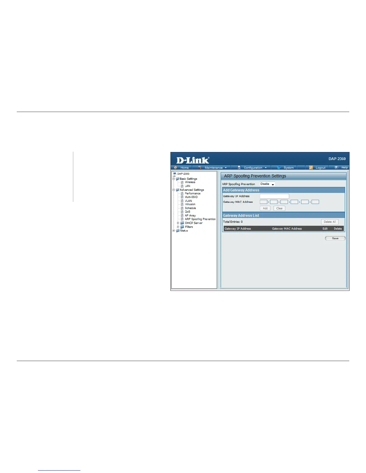 The ARP Spoong Prevention feature allows users to add IP/MAC address mapping to prevent ARP spoong attack.