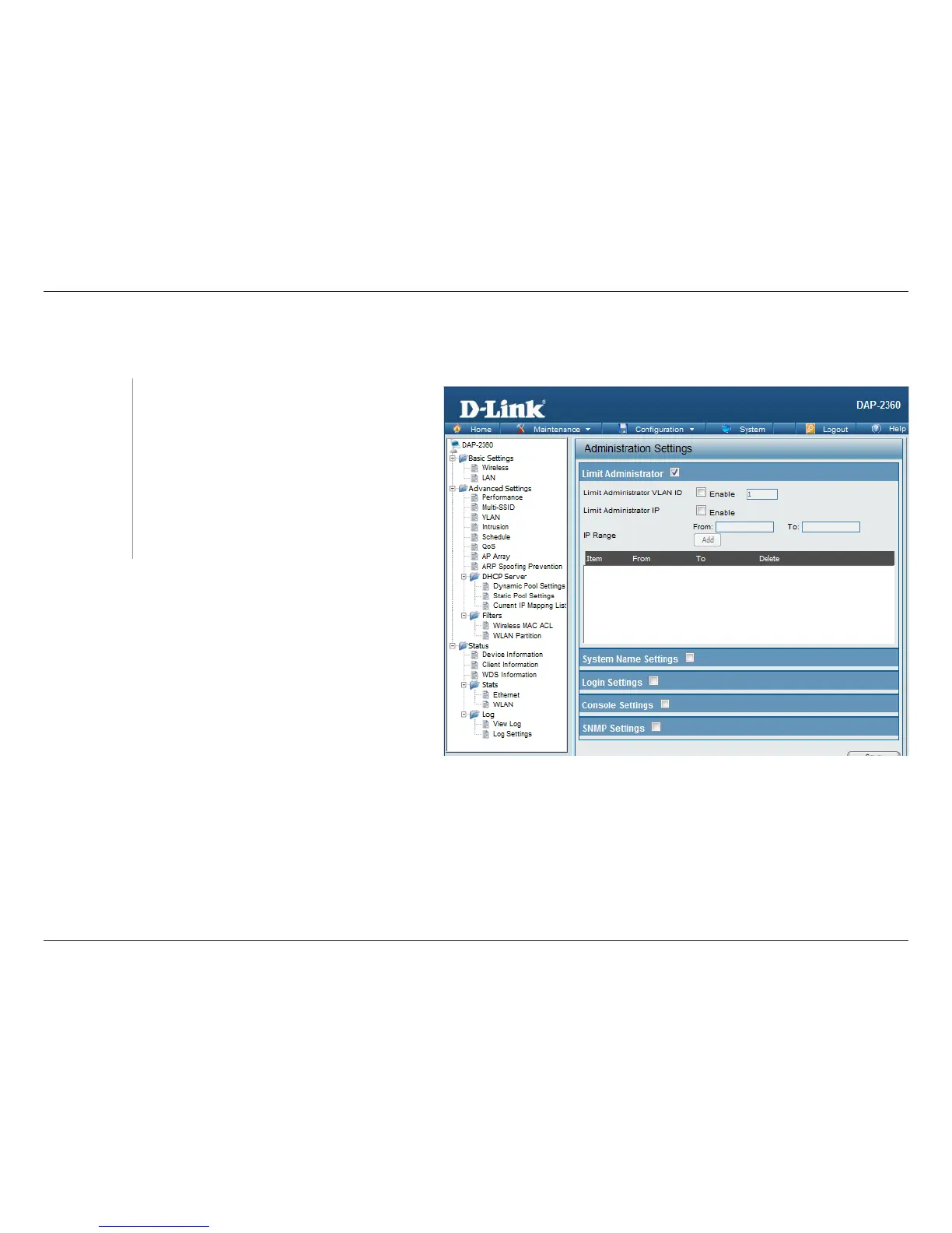 Each of the ve main categories display various hidden administrator parameters and settings.