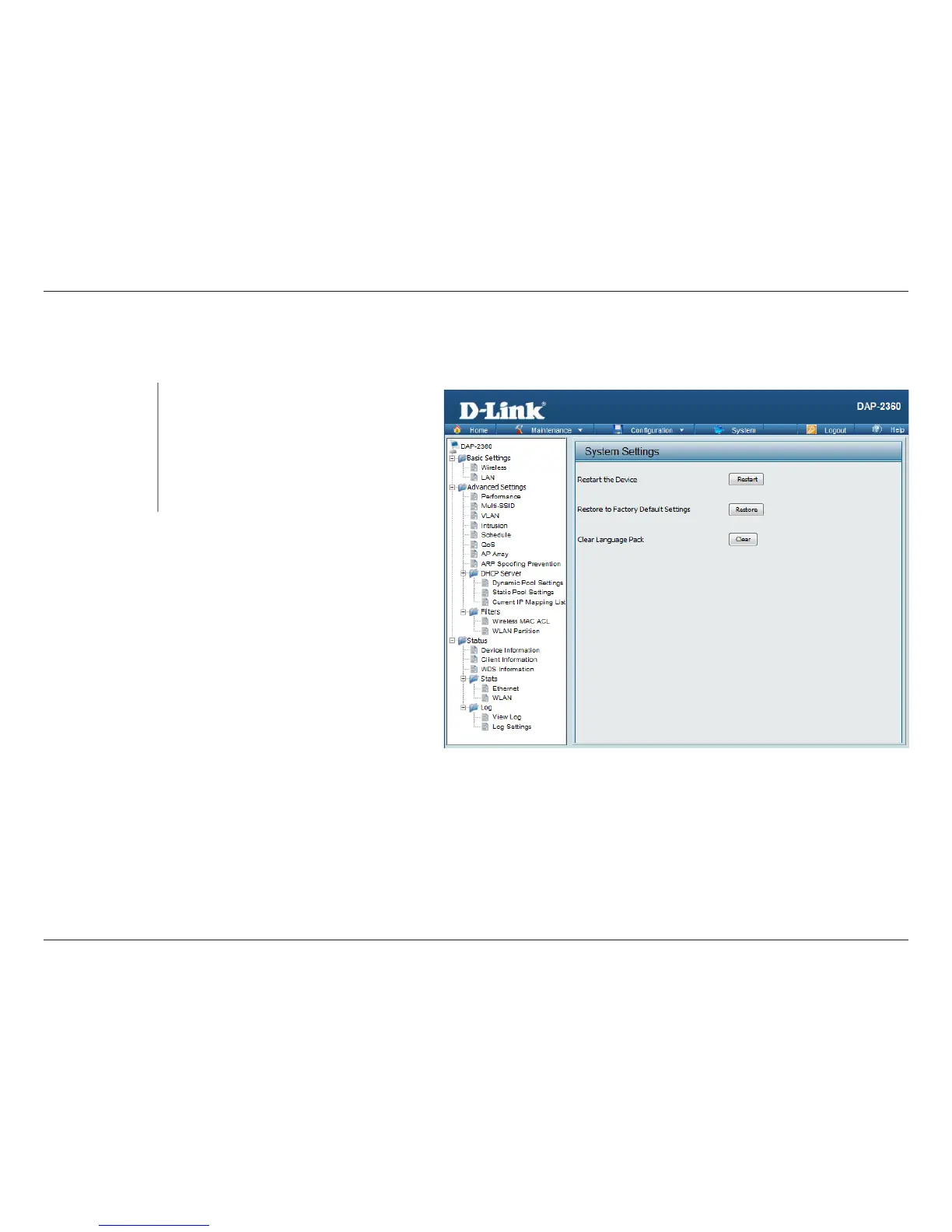 Click Restart to restart the DAP-2360.