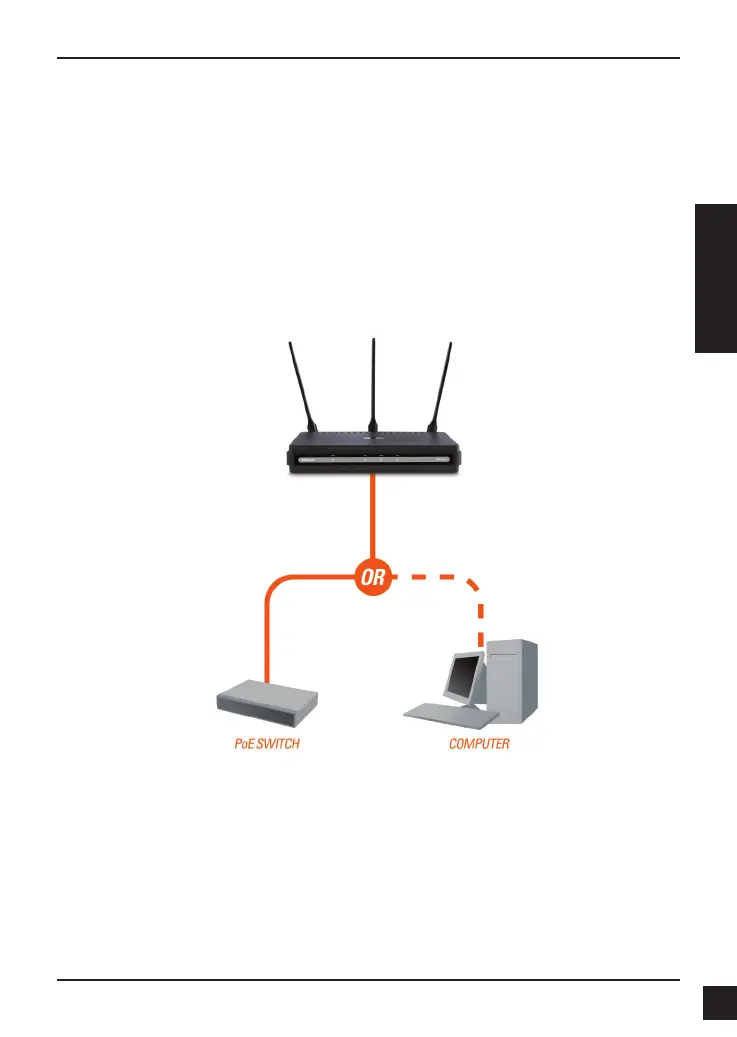 an den LAN-Port am DAP-2553 und das andere Ende an Ihren PoE-Switch