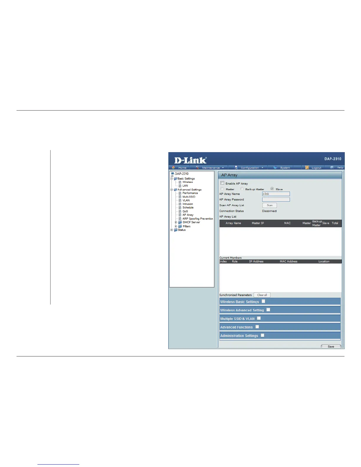 The DAP-2310 AP array feature supports up to