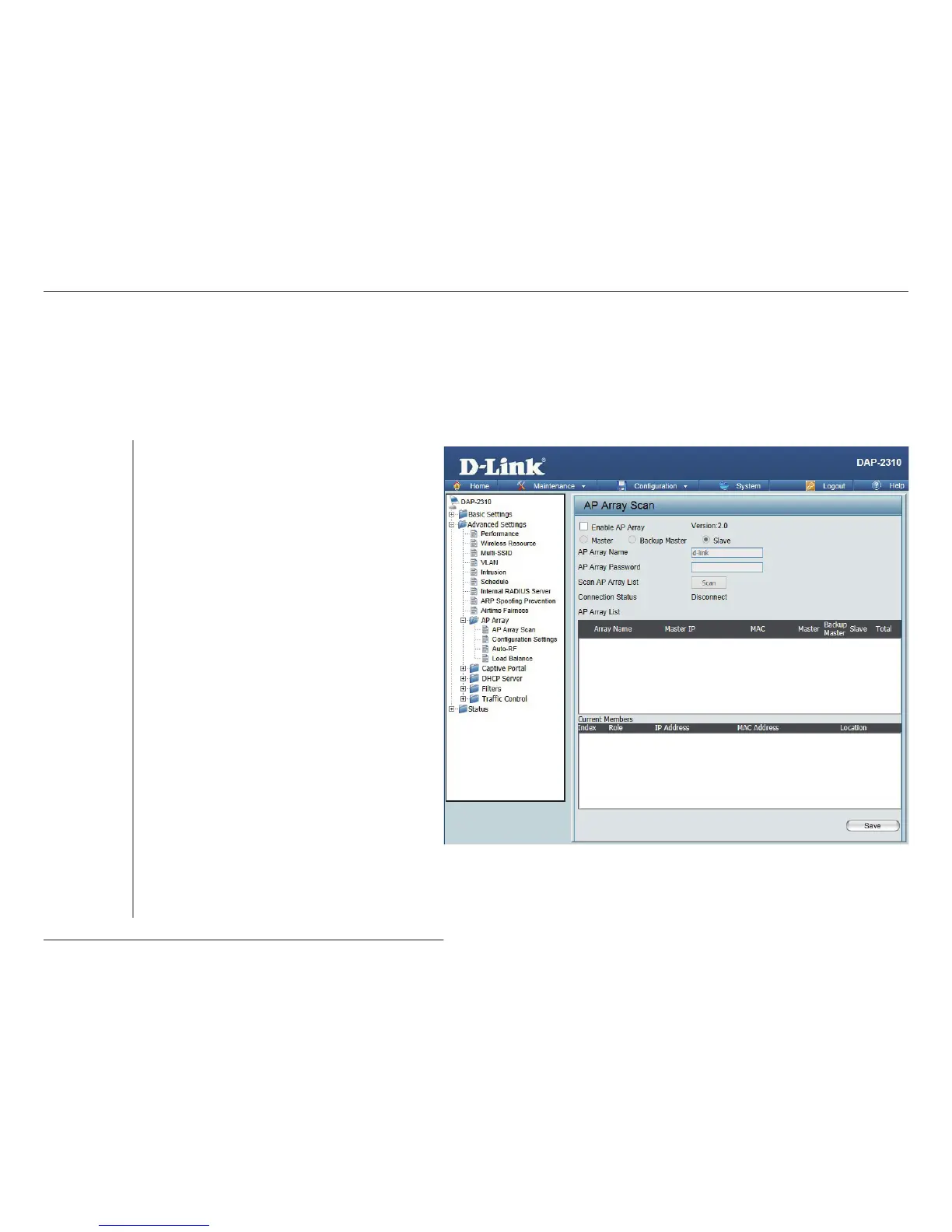 The AP Array window is used to create up to 32 APs on a local network to be organized into a single group in order to increase