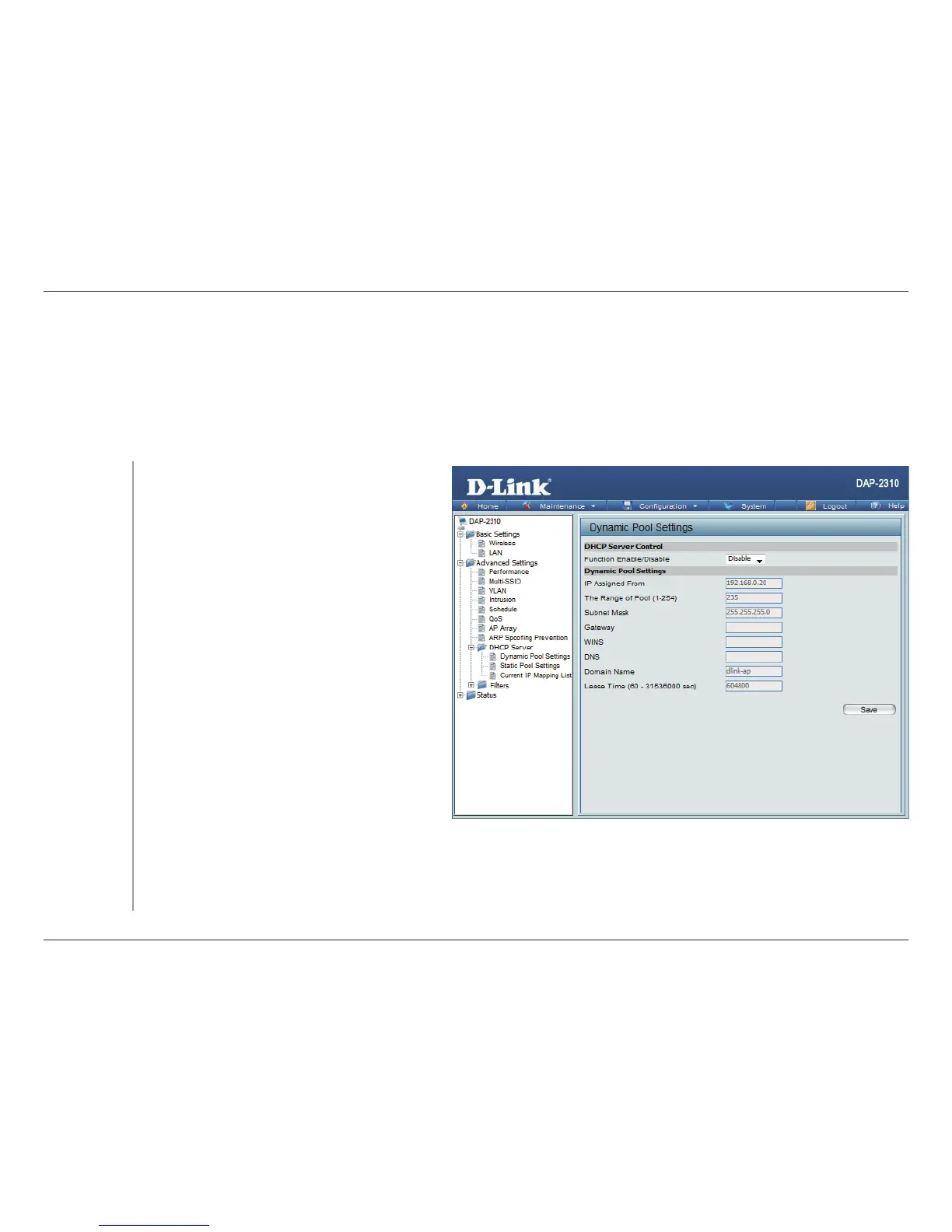 allows wireless stations to receive an available IP with lease time control. If needed or required in the network, the DAP-2310