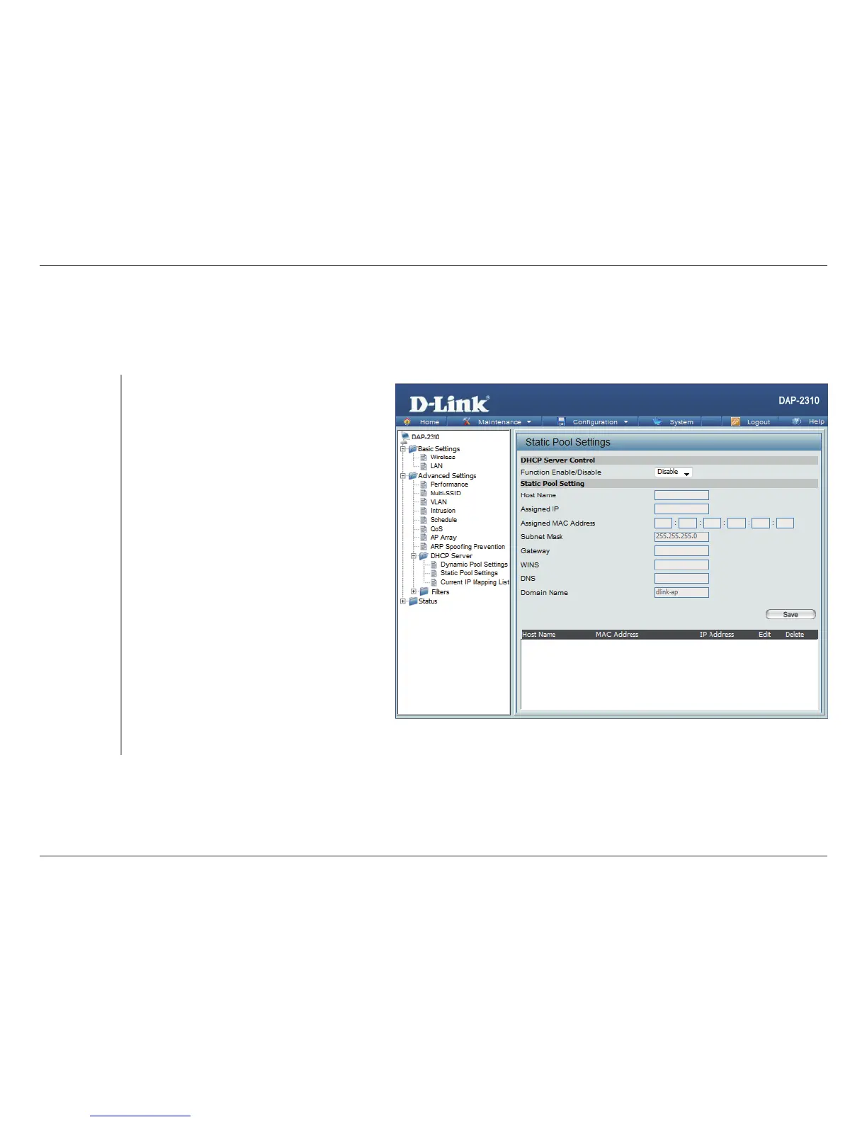 The DHCP address pool denes the range of IP addresses that can be assigned to stations on the network. A static pool allows