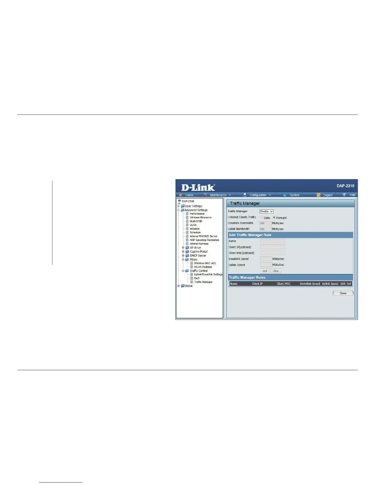 and specify downlink/ uplink speed for new trac manager rules. Click the Save button to let your changes take eect.
