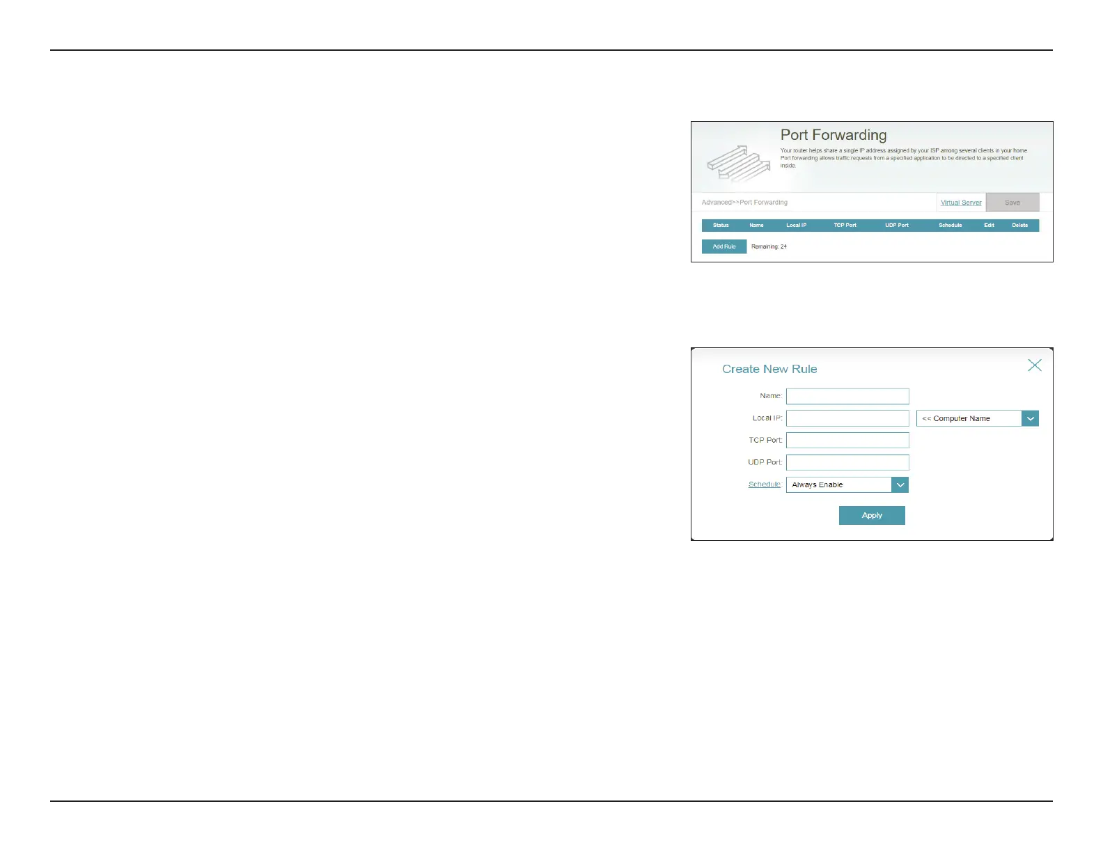 UDP Port: Enter the UDP ports that you want to forward. You can enter a single