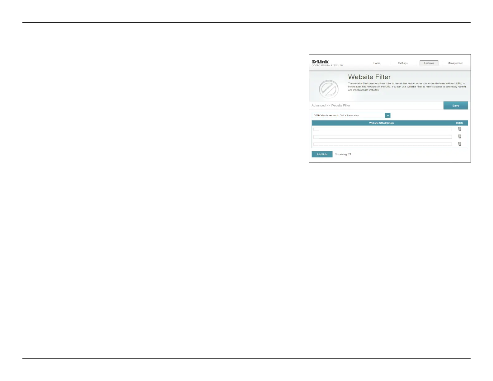 enter the URL or domain. If you wish to remove a rule, click on its trash can