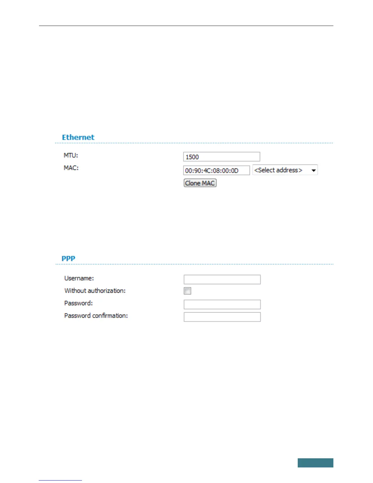 5. If your ISP uses MAC address binding, in the Ethernet section, in the