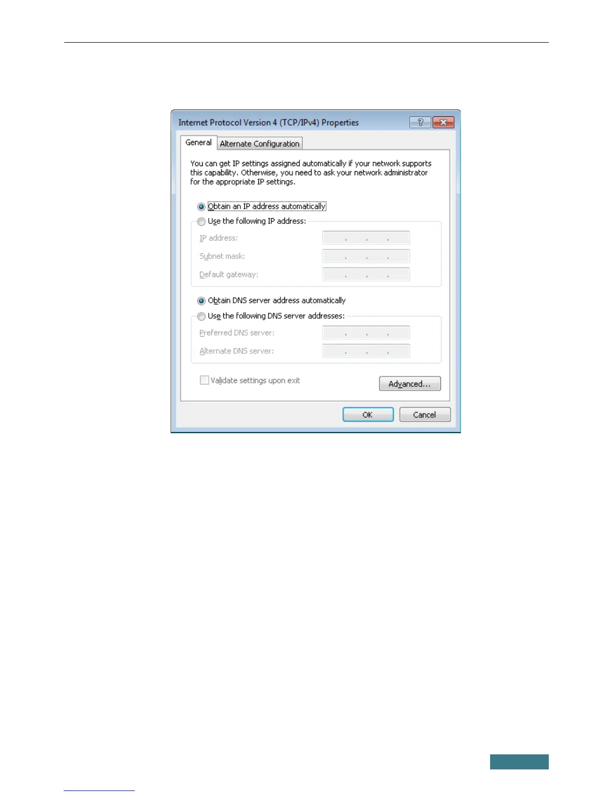 6. Select the Obtain an IP address automatically and Obtain DNS