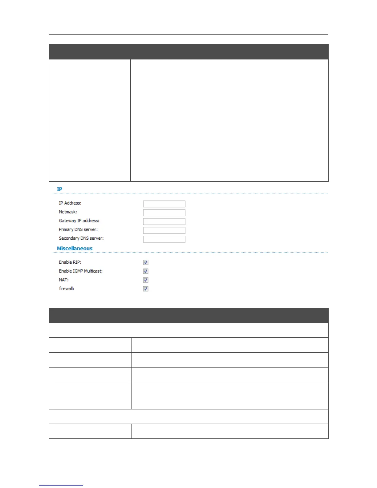 Figure 104. The page for creating a new connection. The IP and Miscellaneous sections.