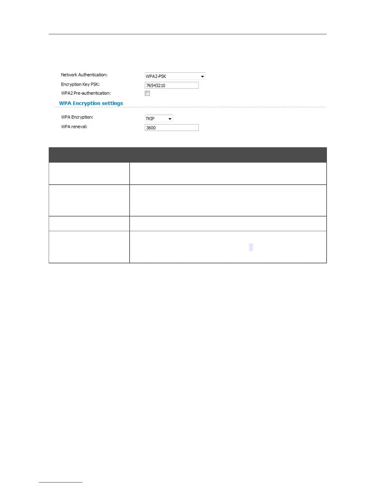When the WPA-PSK, WPA2-PSK, or WPA-PSK/WPA2-PSK mixed value is selected, the