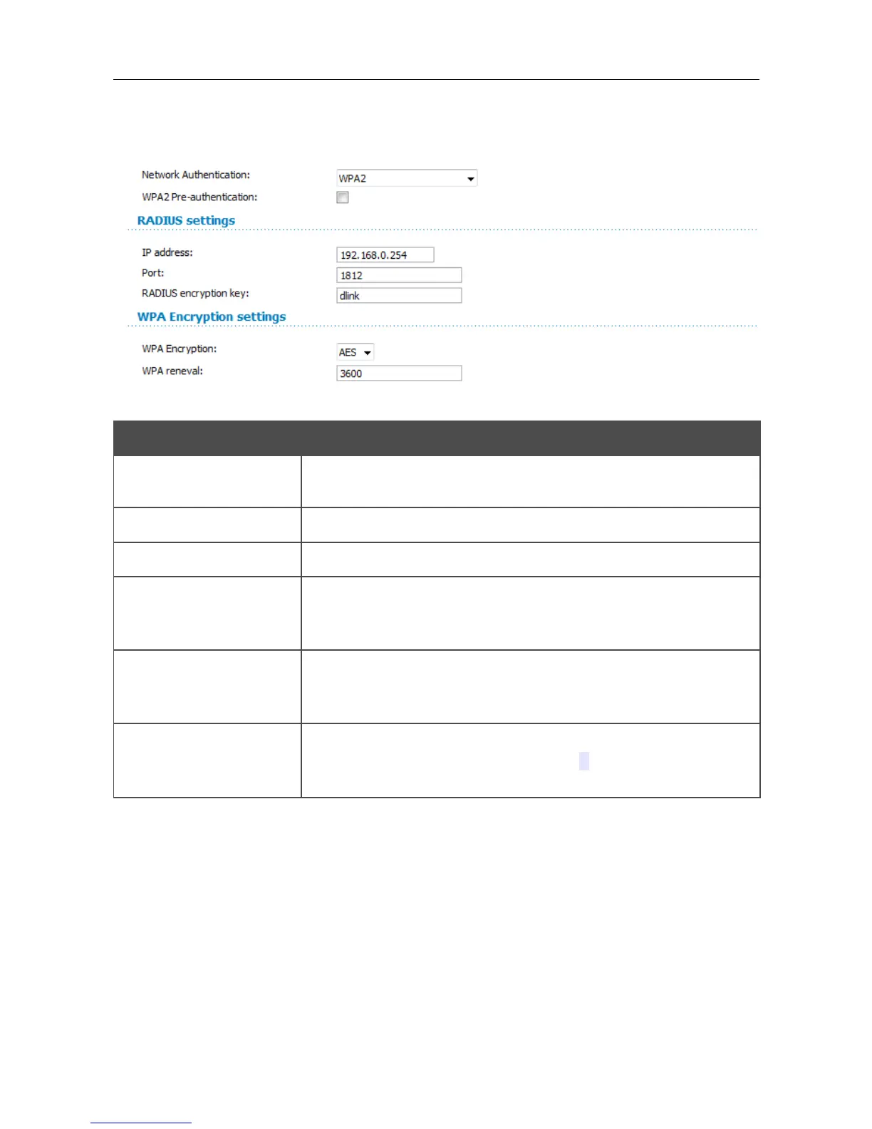When the WPA, WPA2, or WPA/WPA2 mixed value is selected, the RADIUS settings and