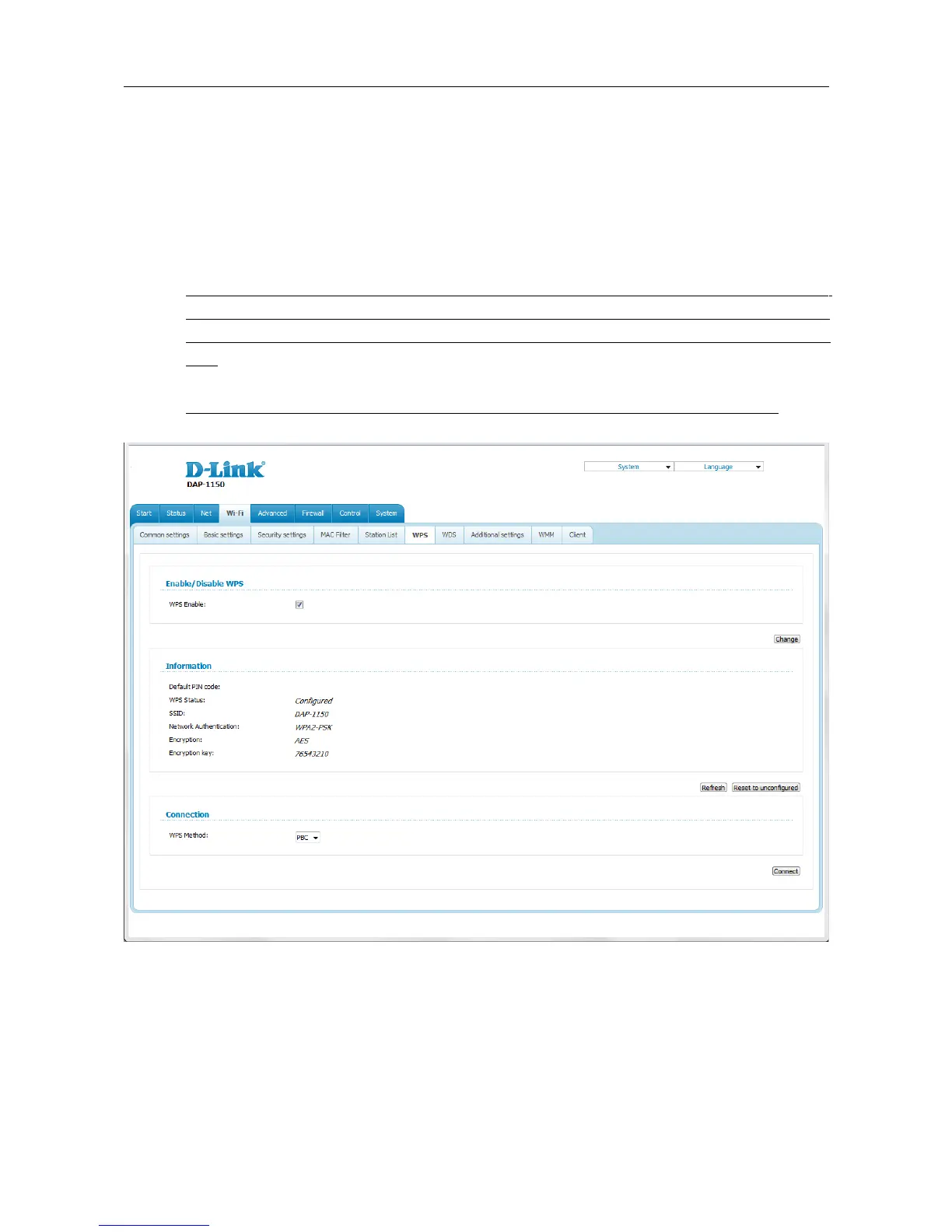 Before using the WPS function it is required to configure a type of WPA encryption.