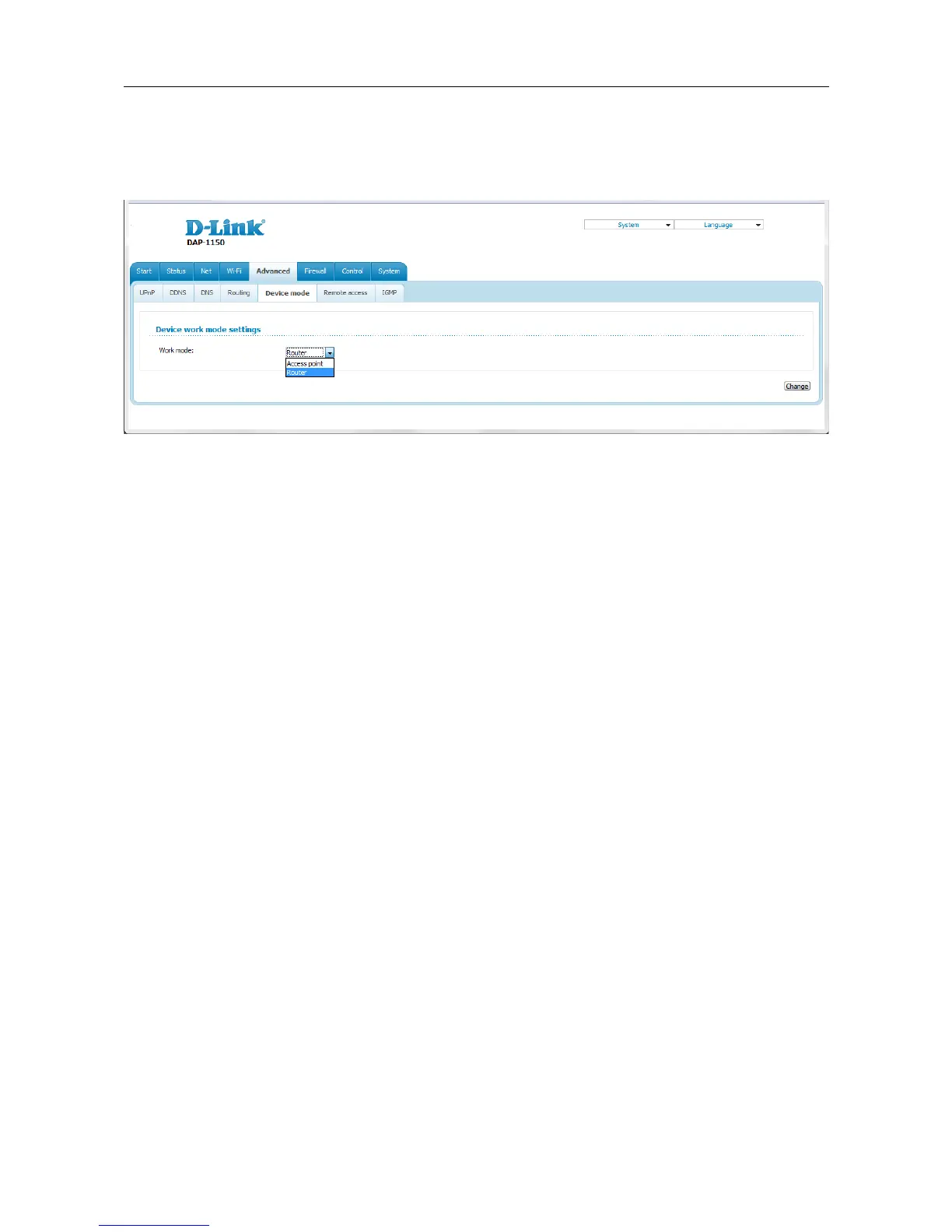 On the Advanced / Device mode page, you can change the operating mode of the device.