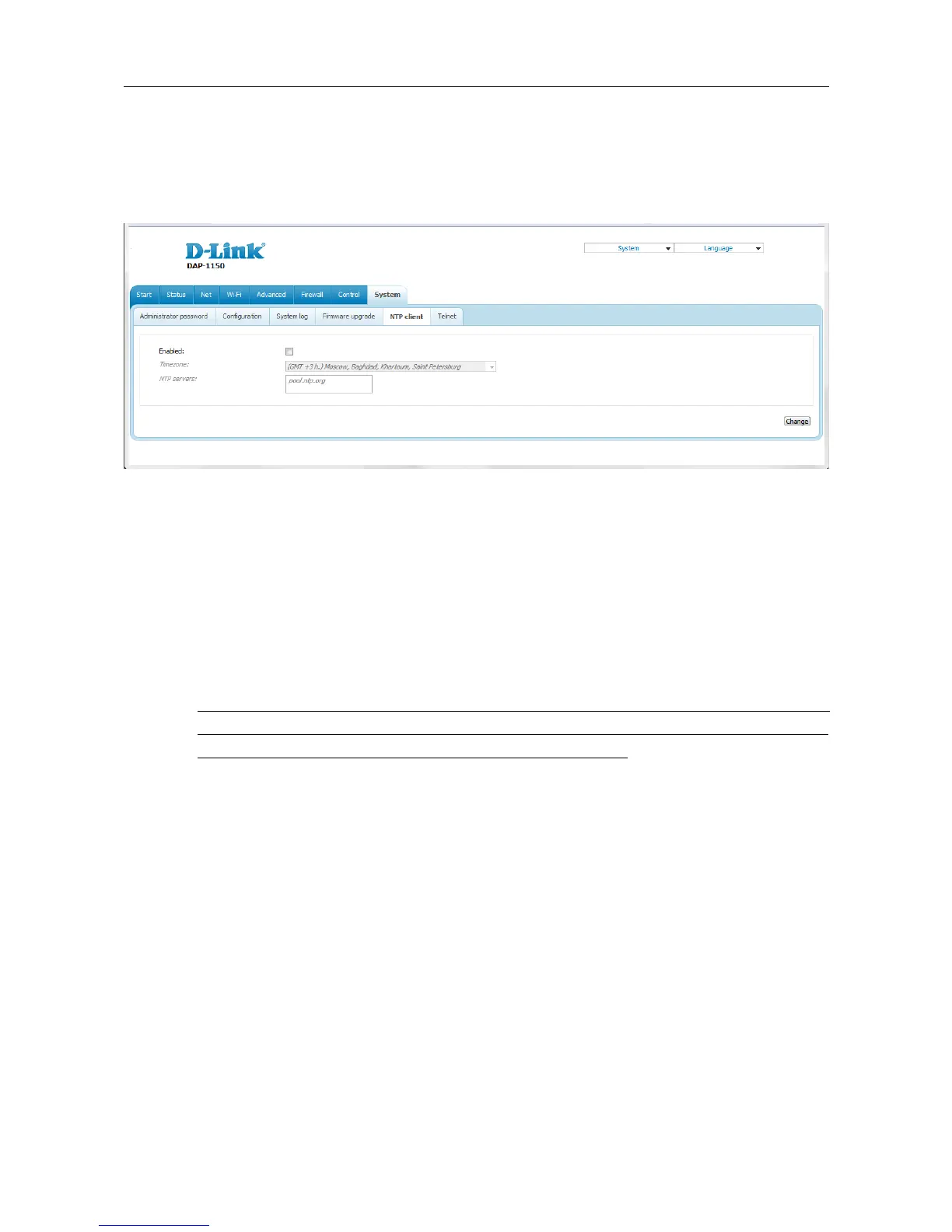 On the System / NTP client page, you can configure automatic synchronization of the system