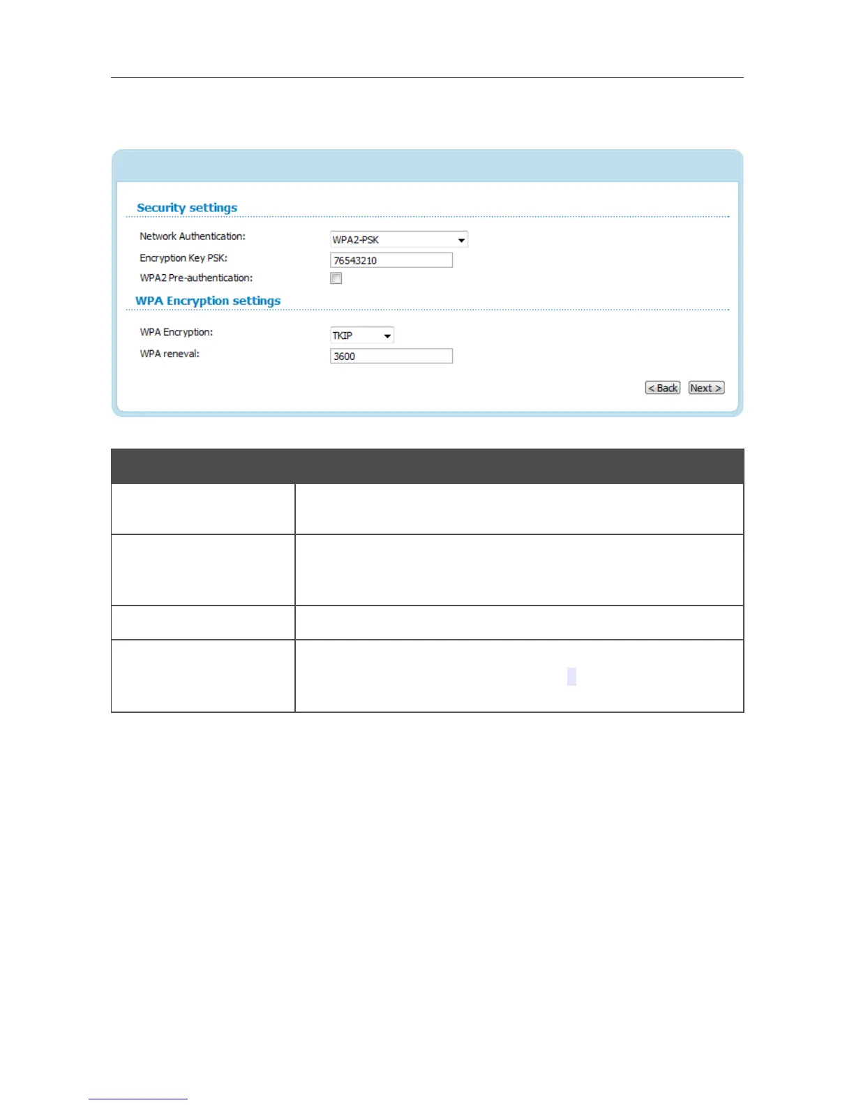 When the WPA-PSK, WPA2-PSK, or WPA-PSK/WPA2-PSK mixed value is selected, the