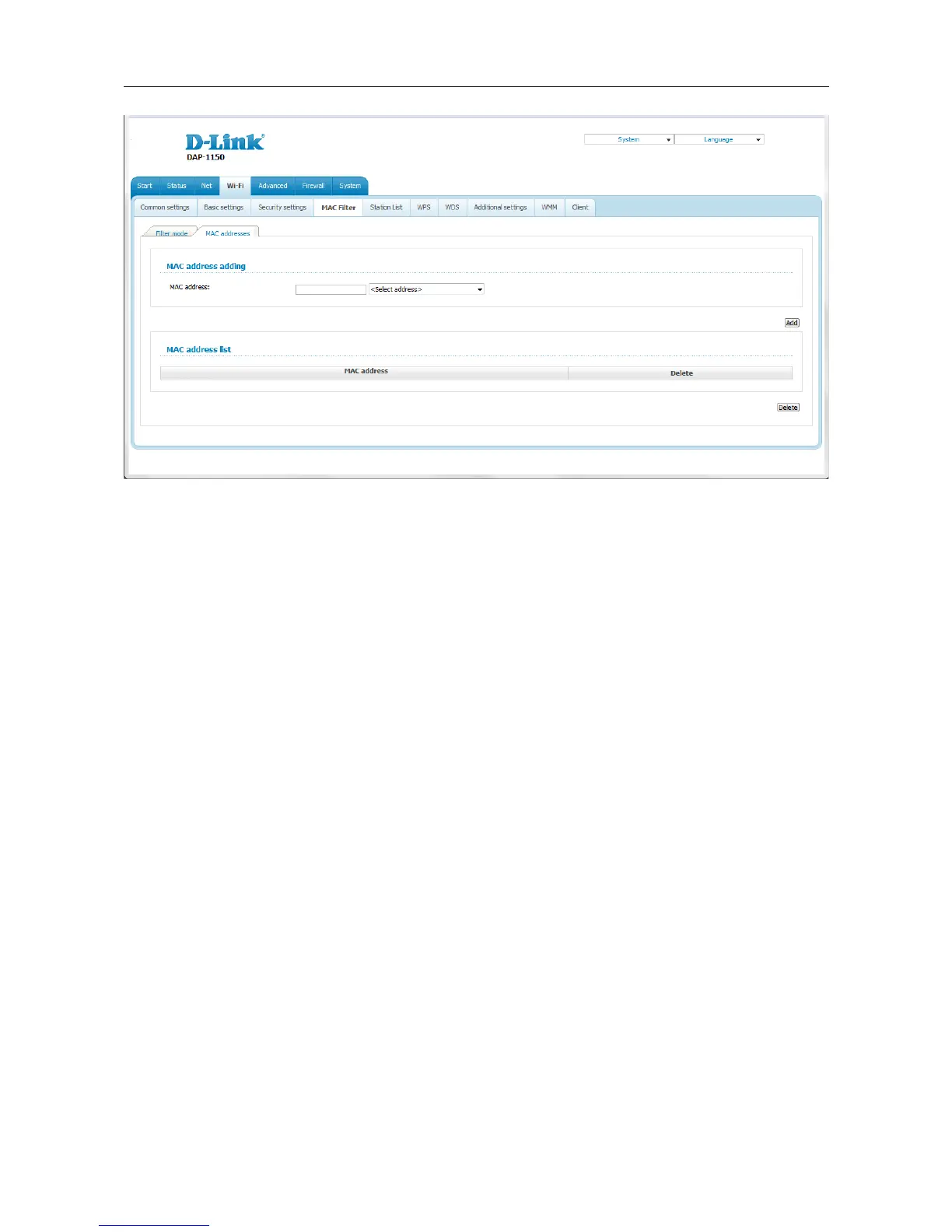 of the relevant MAC address in the MAC address list section and click the Delete button.