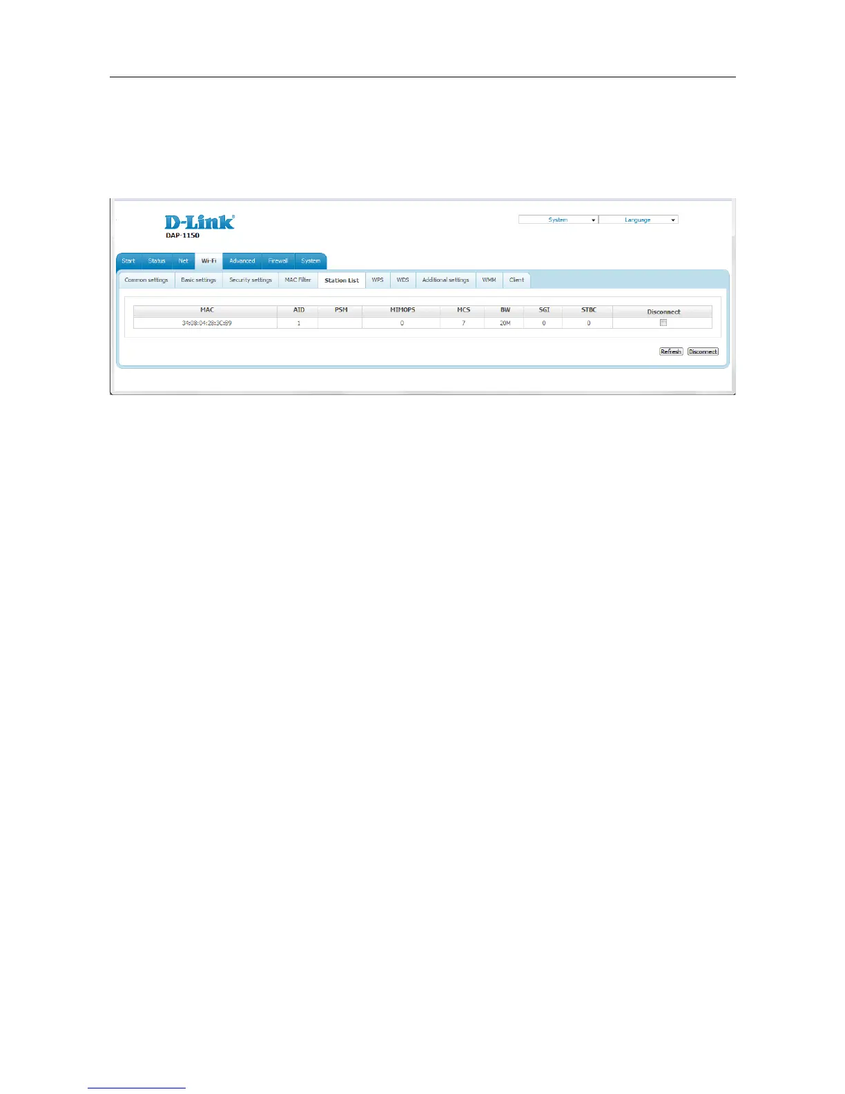 point. Devices connected to the access point via the WDS function are not displayed in the list.