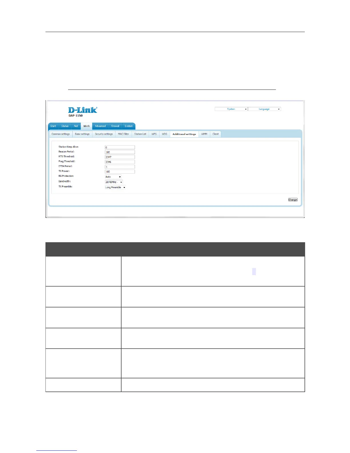 Changing parameters presented on this page may negatively affect your WLAN!