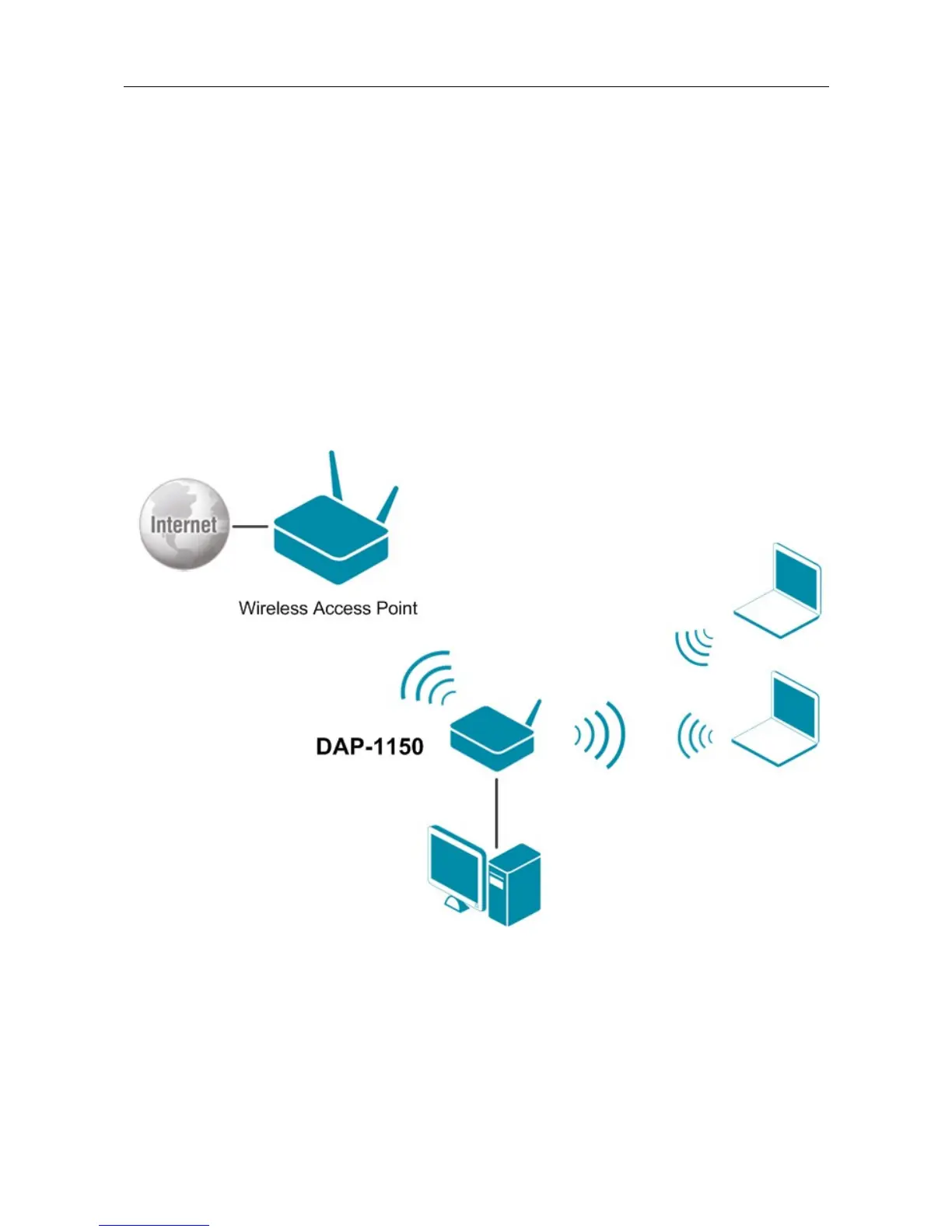 The “client” function in the access point mode allows using DAP-1150 as a wireless client and a
