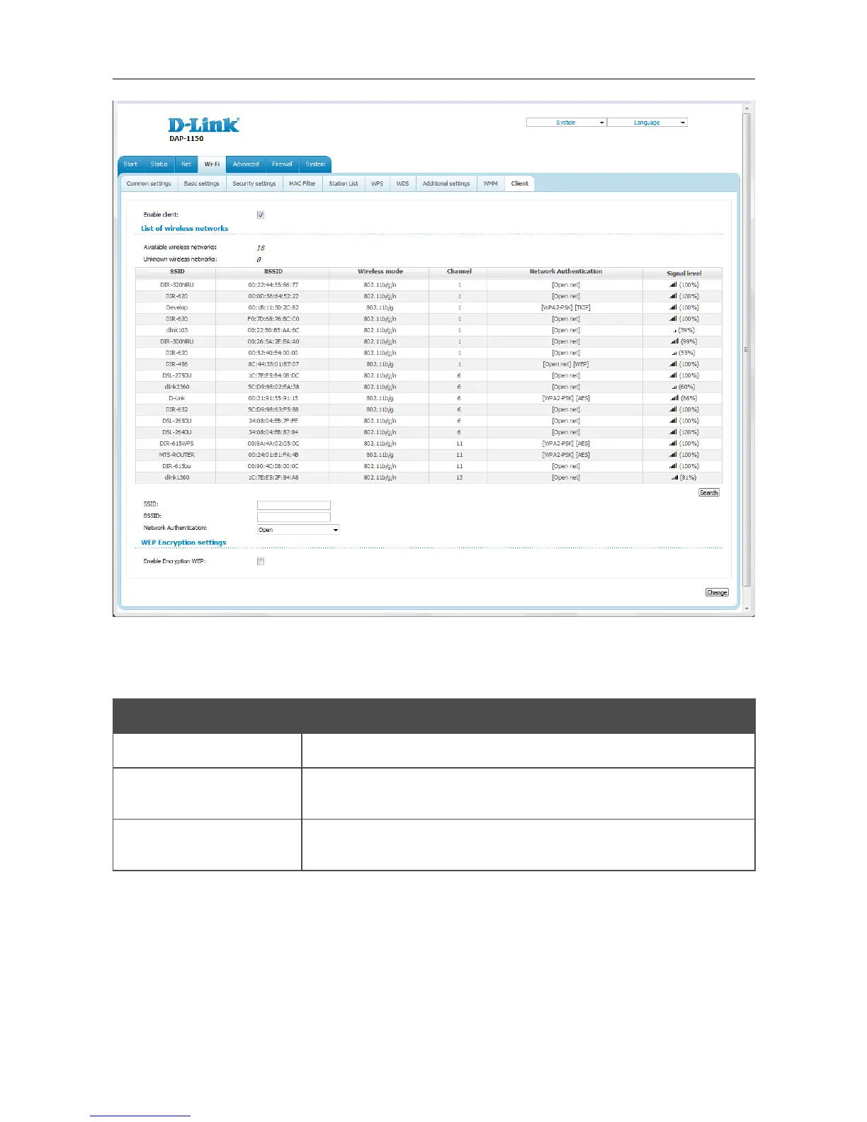 To configure the access point as a client, select the Enable client checkbox. When the checkbox is