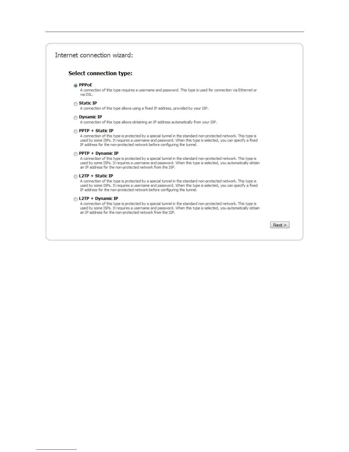 Figure 62. The page for selecting the connection type.