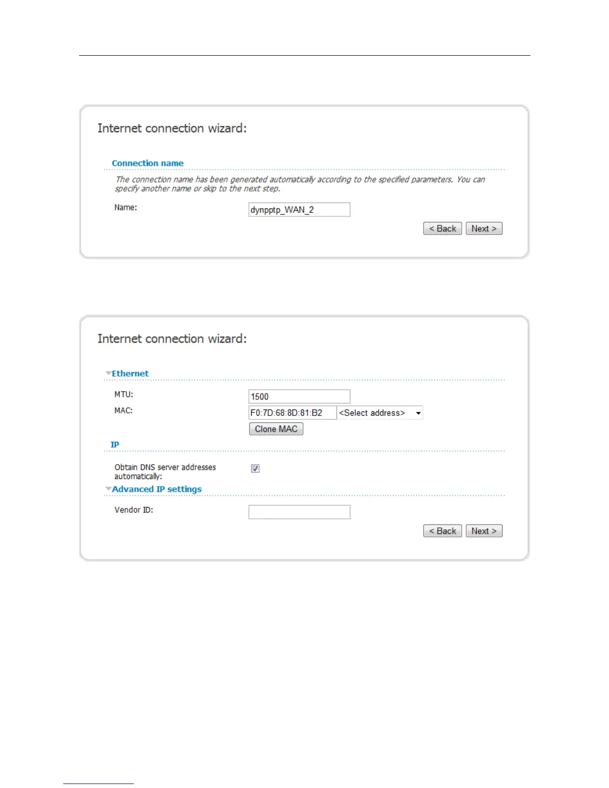 Figure 80. Configuring PPTP + Dynamic IP WAN connection.