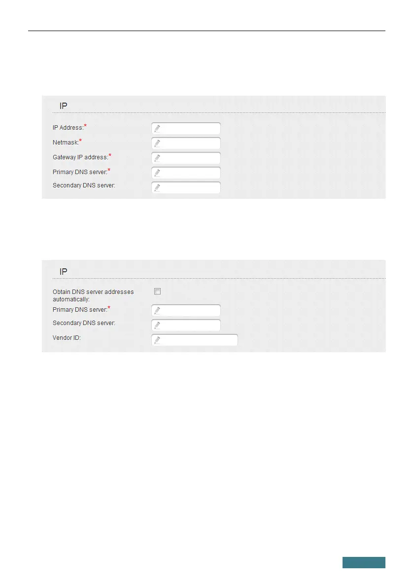 7. For connection of Static IP type: in the IP section, fill in the IP