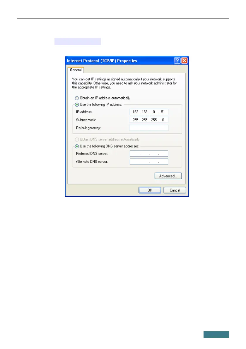 value 198.168.0.51 in the IP address field. The Subnet mask