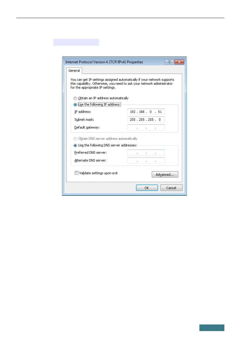 value 198.168.0.51 in the IP address field. The Subnet mask
