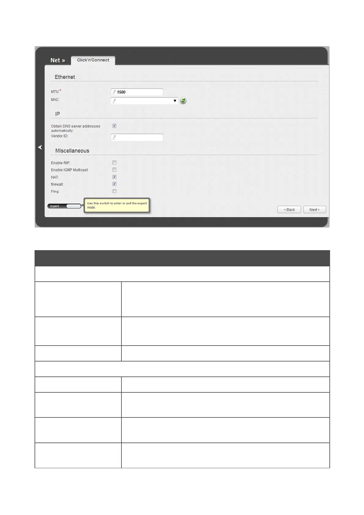 Figure 86. Configuring PPTP + Dynamic IP WAN connection. The expert settings mode. The IP and