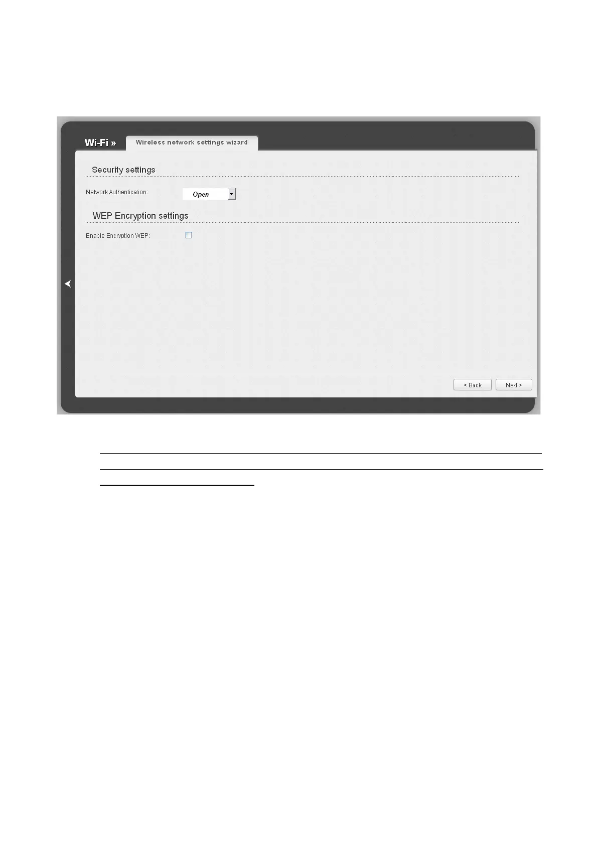 On the next page, you can modify security settings of the WLAN. By default, the Open network