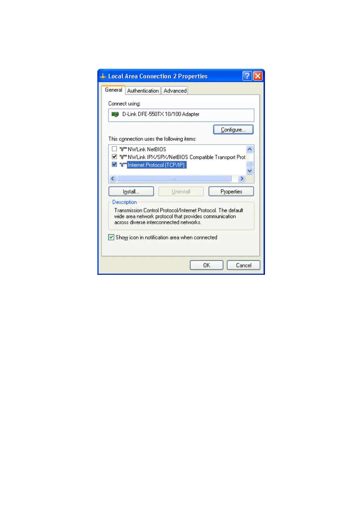 Internet Protocol (TCP/IP) line. Click the Properties button.