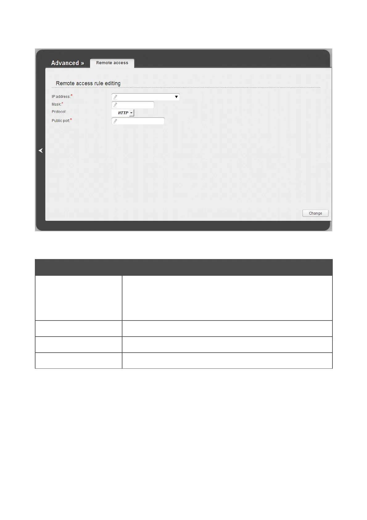 To edit a rule for remote access, click the relevant link. On the opened page, change the needed