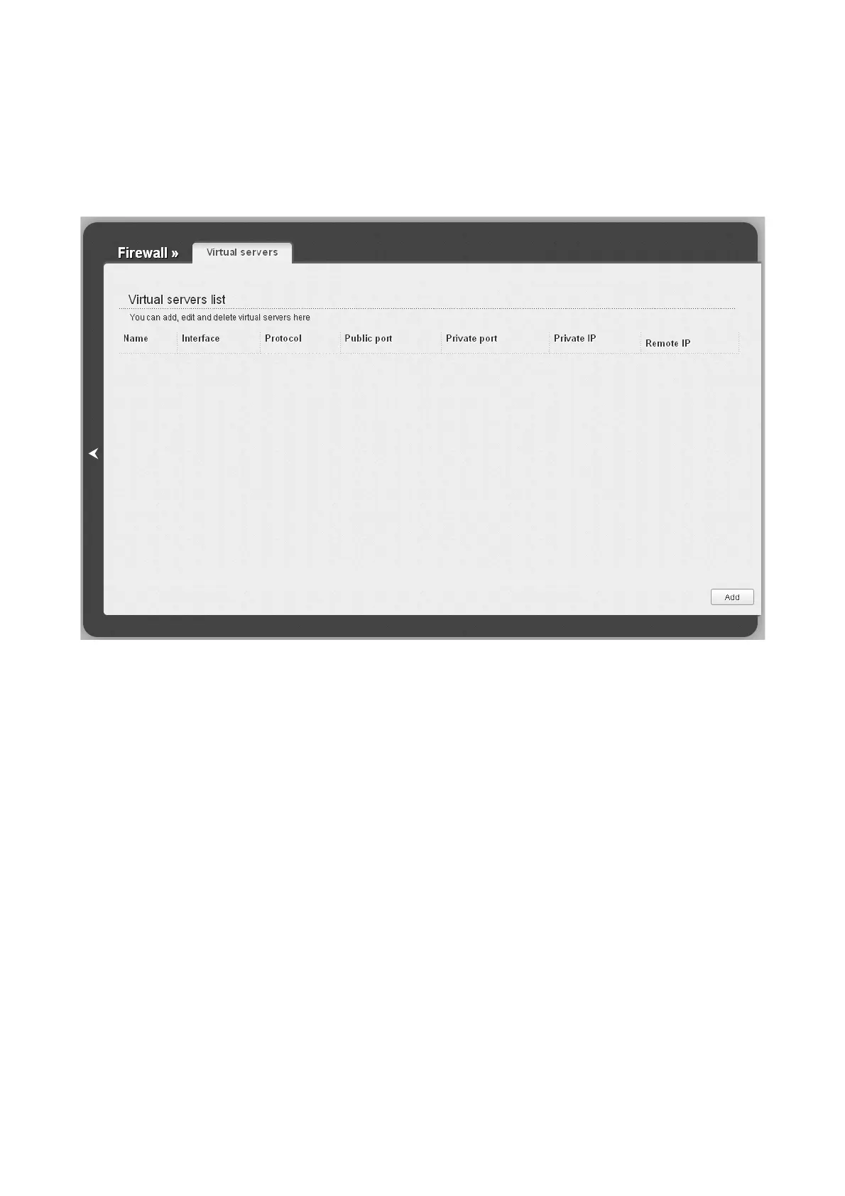 On the Firewall / Virtual servers page, you can create virtual servers for redirecting incoming