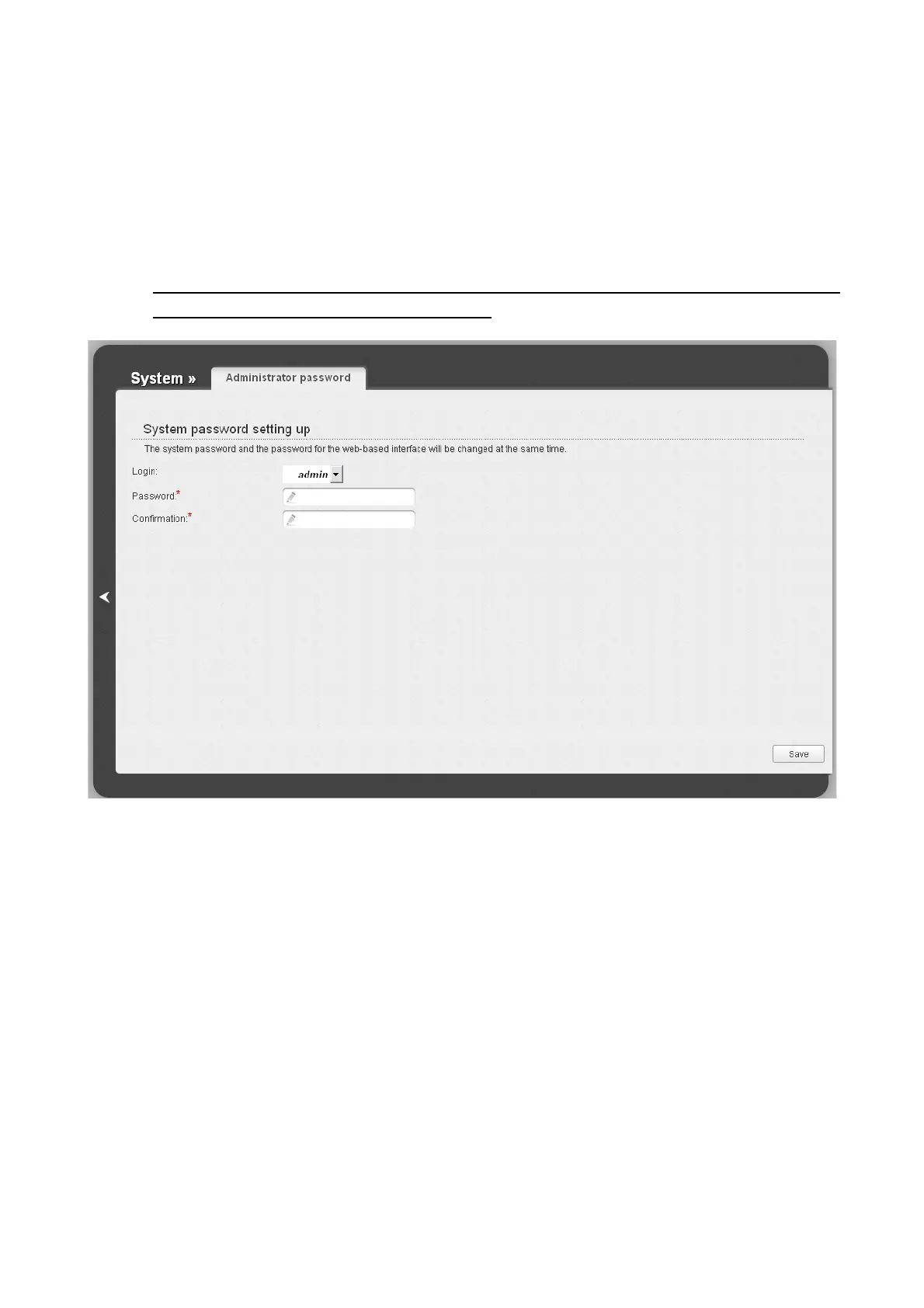 Enter the new password in the Password and Confirmation fields and click the Save button.