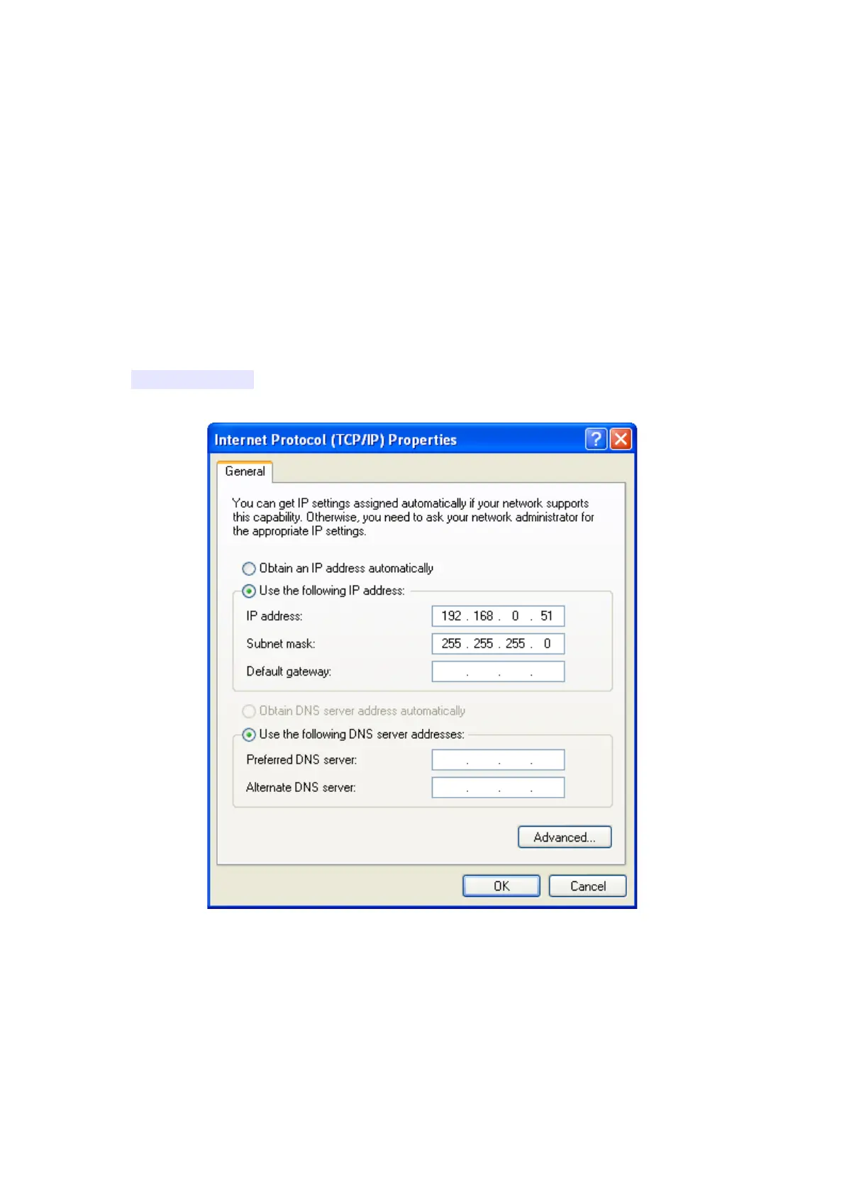 Figure 11. The Internet Protocol (TCP/IP) Properties window.