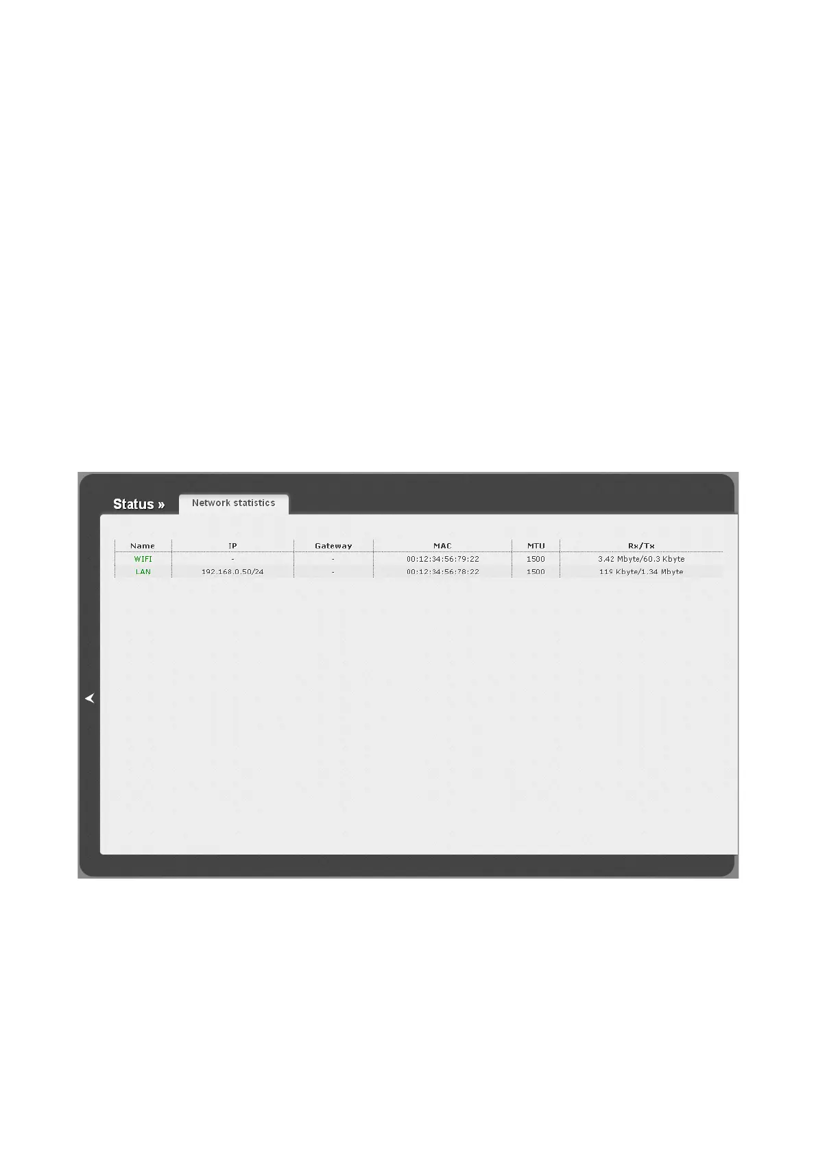 address, MTU value, and volume of data received and transmitted (with increase of the volume the