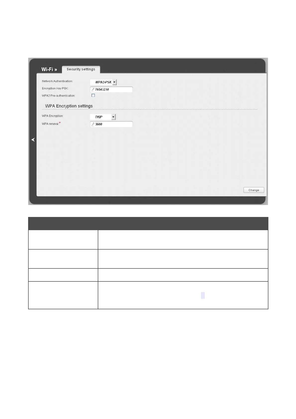 When the WPA-PSK or WPA2-PSK value is selected, the WPA Encryption settings section is