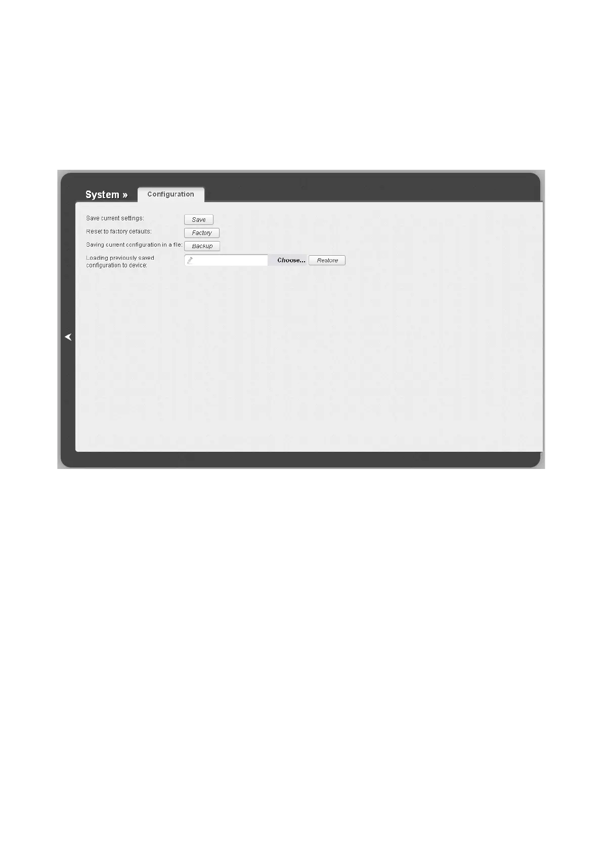 memory, restore the factory defaults, backup the current configuration, or restore the device's