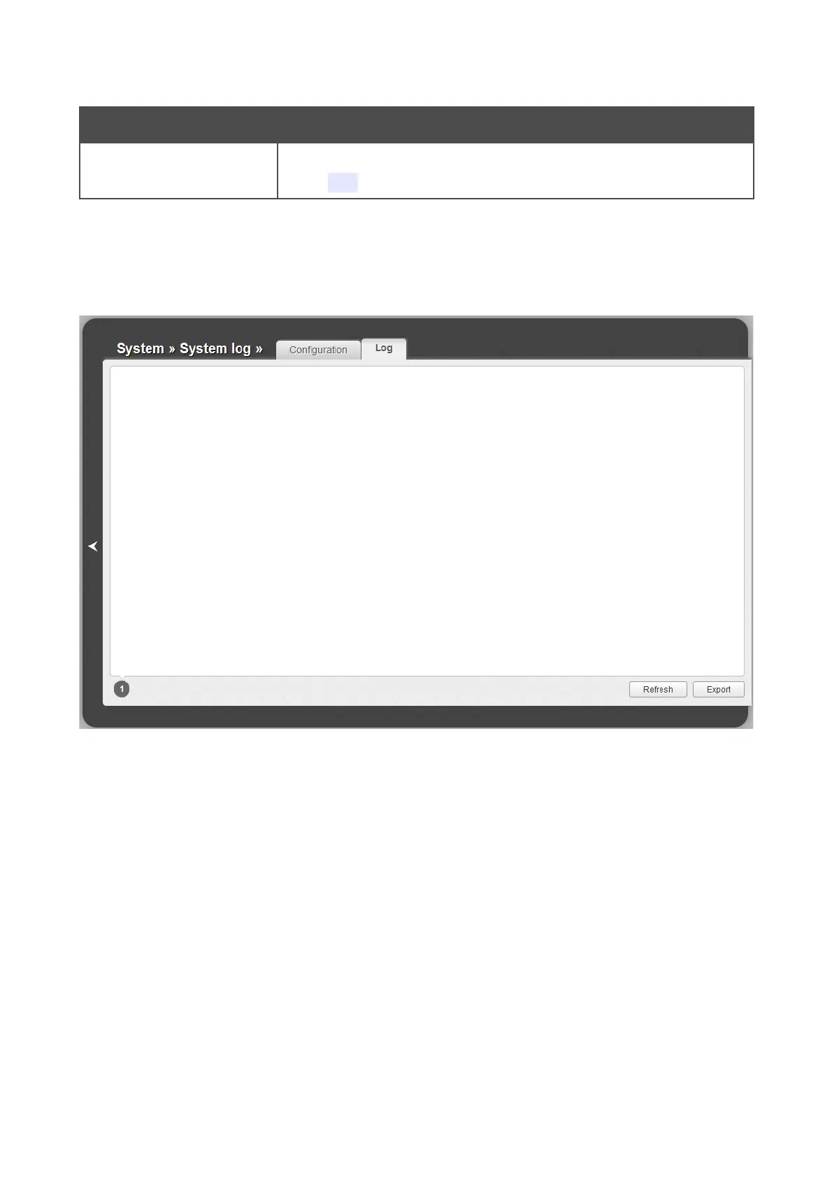Figure 60. The System / System log page. The Log tab.