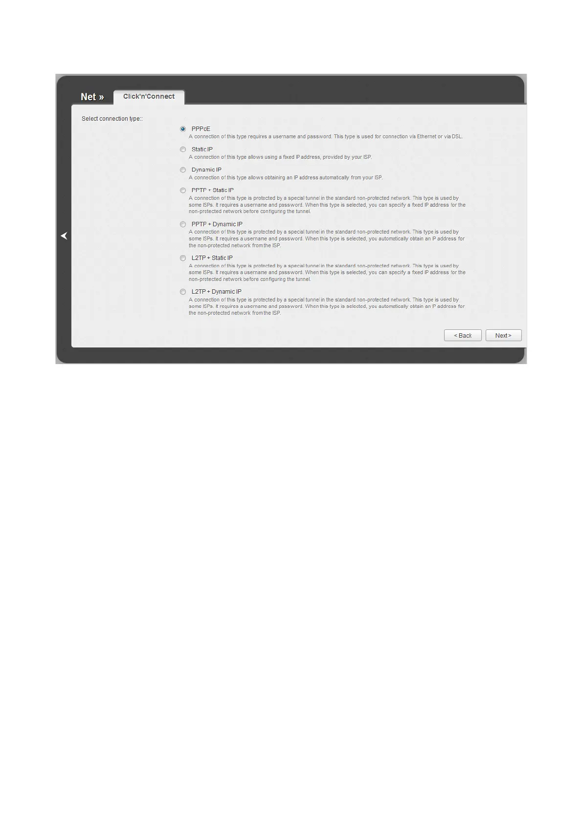 Figure 66. The page for selecting the connection type.