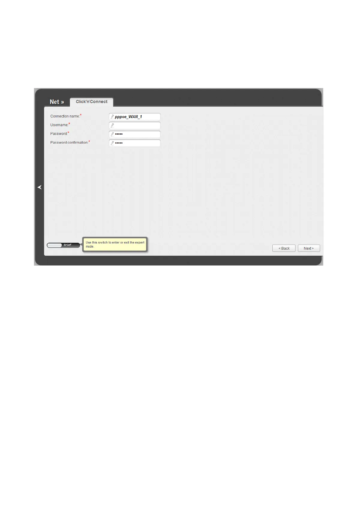 Figure 67. Configuring PPPoE WAN connection.