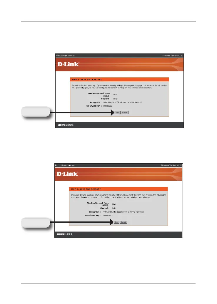 點選儲存來儲存您 DAP-1160 的組態。您的 DAP-1160 將會自動重新啟動。