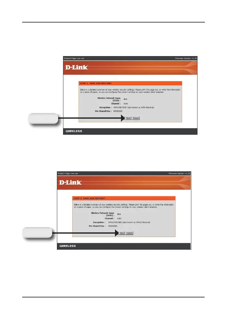 Click Save to save your conguration in the DAP-1160. Upon saving the