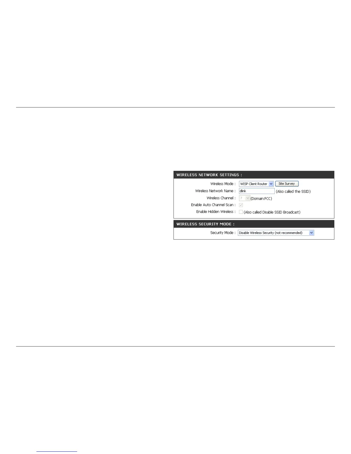 In WISP Router Client mode, the DAP-1160 wirelessly connects to a WISP (Wireless Internet Service Provider) AP. In this mode, the DAP-